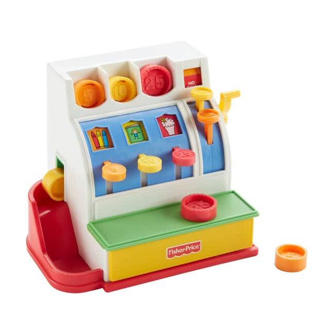 Kinderen vinden het leuk om deze kassa van Fisher-Price te bedienen. De bel gaat af wanneer de la openspringt. Wordt geleverd met kleurrijke muntstukken voor het herkennen en vergelijken van vormen.