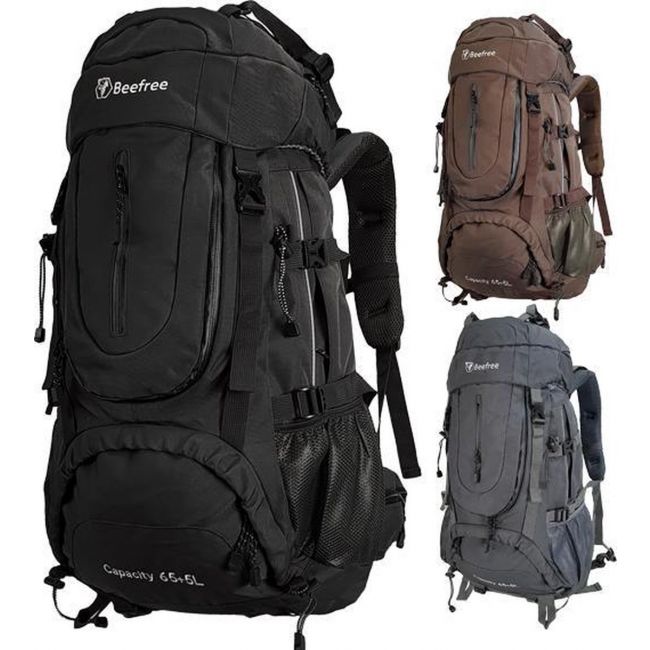 De Beefree 70 liter backpack is geschikt voor allerlei avonturen en is gemaakt van het extra versterk material. Daarnaast beschikt deze backpack over een speciaal intern ventilerend draagsysteem met een stijve rugzijde wat ervoor zorgt dat het gewicht gelijkmatig verdeeld wordt over heupen, schouders en rug. De stijfheid van het rugsysteem wordt bereikt door een aluminium frame. Dit kan vanuit binnenuit verwijderd worden mocht de gebruiker hier voorkeur voor hebben. Het hoofdcompartiment van 65 liter kan bovenaan door middel van riempjes uitgebreid worden waardoor de tas 5 liter extra capaciteit krijgt. Onderaan de tas bevindt zich een afgesloten schoenen/vuile was compartiment. Wat ook ideaal is aan deze backpack is de verschillende kleine vakjes voor o.a. uw mobiel, paspoort laders, etc. Deze vakjes bevinden zich aan de bovenzijde, heupband, zijkant van de backpack en in het hoofdcompartiment. De vakjes zijn afsluitbaar met een rits. Tevens is deze backpack makkelijk schoon te maken.