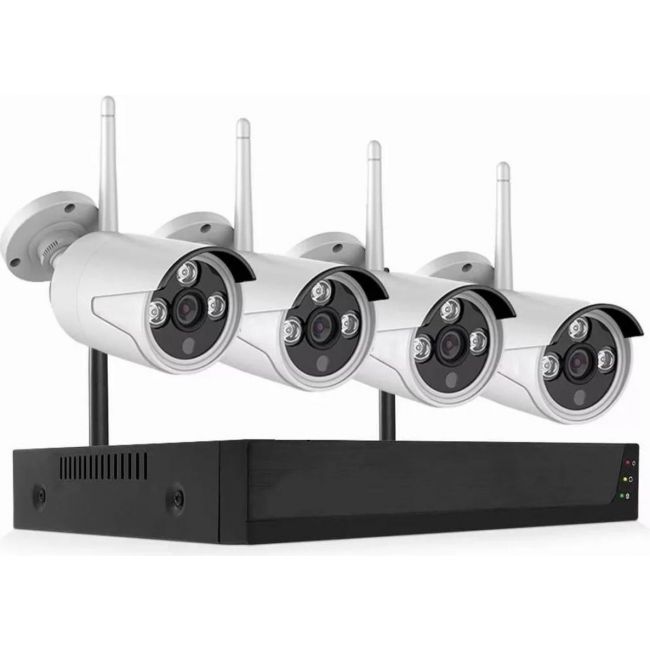 Draadloze beveiligingscamera systeem met 4 x full hd camera's incl NVR, de beelden zijn ook op afstand op uw mobiel of PC te bekijken.