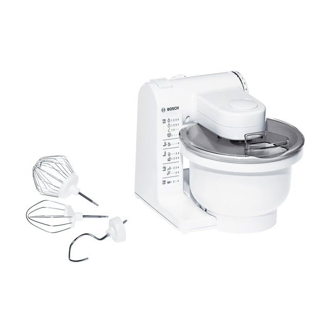 De Bosch Keukenmachine MUM 4405 is een ontzettende handige hulp in je keuken! Deze keukenmachine is voorzien van 4 standen en heeft een vermogen van 500 watt. Meegeleverd zijn een roergarde, klopper, deksel & metalen kneedhaak. De mengkom is van kunsstof. Ook handig: de accessoires zijn vaatwasserbestendig! De afmetingen zijn (H x B x D) 26,5 x 26,5 x 30,5 cm.