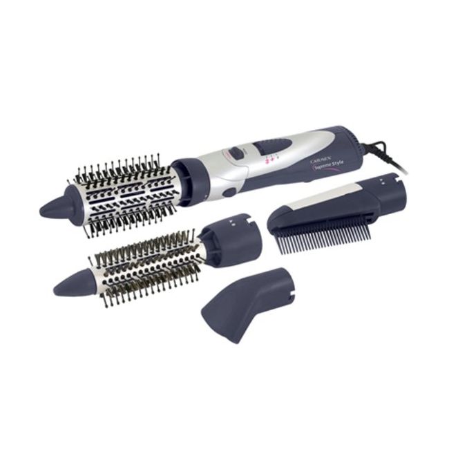De Carmen Supreme Style krulborstel is niet alleen maar een krulborstel, het is méér dan dat. Het is een complete stylingset voor je haar dankzij vier meegeleverde accessoires. Met dit gebruiksvriendelijke apparaat verzorg je eenvoudig en snel je lange haren. Je kunt kiezen uit twee verschillende snelheden en vier temperatuurstanden. Door de vier meegeleverde accessoires én de uitgebreide keuze in snelheid en temperatuur is ieder haartype zorgvuldig te stylen. Dankzij het draaisnoer raakt de kabel nooit in de war. Ben je klaar met gebruiken? Dan berg je de Carmen Supreme Style eenvoudig op dankzij de handige ophangring.