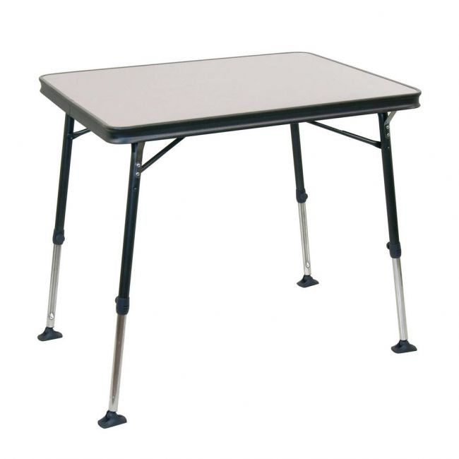 Een luxe en stijlvolle tafel. Deze lichtgewicht campingtafel is voorzien van een hittebestendig en watervast tafelblad en heeft een extra verstevigde aluminium constructie. Daarnaast zorgt de afwerking van de poten en van de tafelrand voor een stijlvolle uitstraling. De tafel beschikt over traploos verstelbare poten (52-74 cm) die zijn in te klappen, hierdoor is deze tafel eenvoudig en compact te vervoeren (ingeklapt (lxbxh): 80x60x4). Doordat de tafel beschikt over stabilisatie voetjes, staat deze tafel op iedere ondergrond stabiel. Maximale belasting: 50 kilogram.