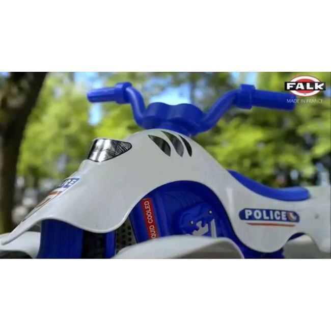 Deze Falk quad heeft een lengte van 84 centimeter en wordt aangedreven door gewone trappers. Deze trapquad wordt geleverd met (engelse) politie stickers. Het is een mooie quad van een robuuste kwaliteit en heeft een stoere uitstraling! De quad heeft brede wielen voor stabiliteit en de wielen zijn gemaakt van kunststof waardoor ze zeer slijtvast zijn. Door het ruime zadel is deze quad ook geschikt voor de wat oudere kinderen; tot een max. belastbaar gewicht van 50kg. De Falk quad staat garant voor veel uren speelplezier. Geschikt voor kinderen vanaf 3 jaar.