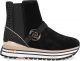Stoere laars uit de nieuwe collectie van Guess. De laars is zwart van kleur en is voorzien van een decoratieve gesp rondom, aan deze gesp is een ketting verbonden. Aan de voorzijde is de merknaam bevestigd in het goud. De laars is te sluiten doormiddel van een rits aan de binnenkant.