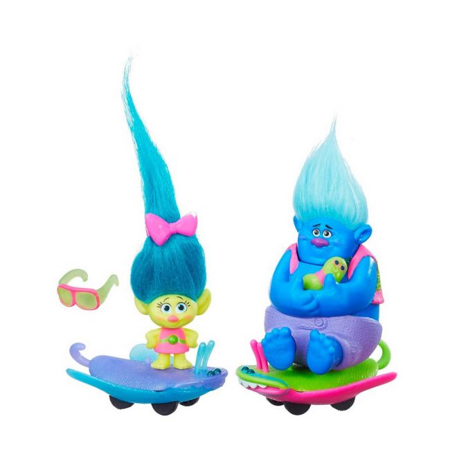 Deze set bevat 2 stepperdestep DreamWorks Trolls skateboards, elk met ruimte voor één trol. Trek naar achteren, laat los en kijk maar hoe ze racen! Alle 4 de figuren in deze set kunnen zo in stijl rondrijden.