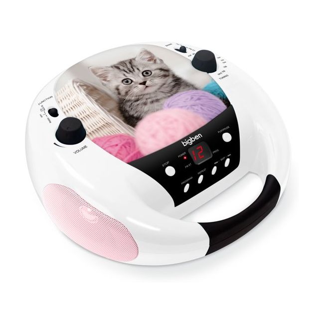 Veel kinderen houden ontzettend van muziek en zijn weg van dieren. Met de portable radio / CD speler van Bigben kunnen kinderen luisteren naar hun favoriete muziek terwijl het design met de schattige poesjes hun kamer opfleurt. Laat ze lekker genieten van de radio of luisteren naar hun eigen muziek met deze kinder CD speler. Het is zelfs mogelijk om een iPod, iPhone of andere MP3-speler via de AUX ingang aan te sluiten op het apparaat.
