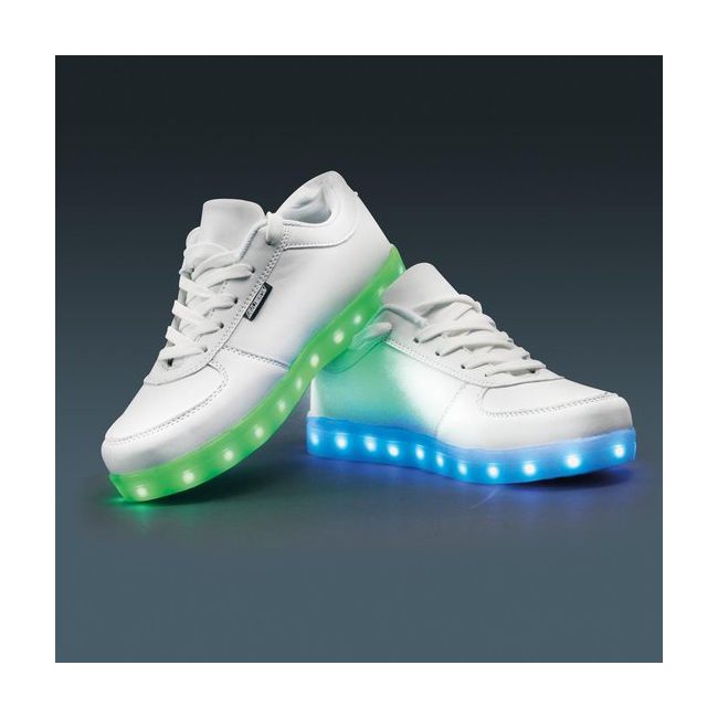 Met een drukknopje aan de binnenkant van elke schoen, kan de zool in 7 verschillende kleuren geactiveerd worden. Met een micro USB-oplaadkabel zijn de schoenen binnen een paar uur weer volledig opgeladen!