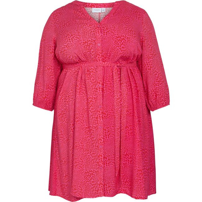 Deze jurk heeft de perfecte pasvorm die je unieke vorm zal flatteren. Viscose is een uitstekende optie als je op zoek bent naar een lichtgewicht stof die mooi drapeert en een glanzende afwerking heeft die zacht aanvoelt. - Type product : Jurk- Hals : V-Hals- Mouw lengte : Lange mouwen- Manchetten : Manchetten met elastiek- Sluiting : Riem in de taille- Lengte : Kort- Details : Knoop detail - Print : All-over print, herhaald over de hele stof