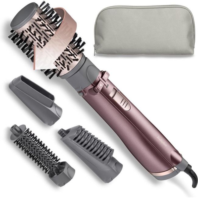 De Beliss Big Hair Föhnborstel set (A960E) van BaByliss is 1000 Watt heel krachtig. De set bevat 4 verwisselbare opzetstukken om te drogen, volumiseren, polijsten en steilen van het haar. Allemaal met een pluisvrij resultaat.