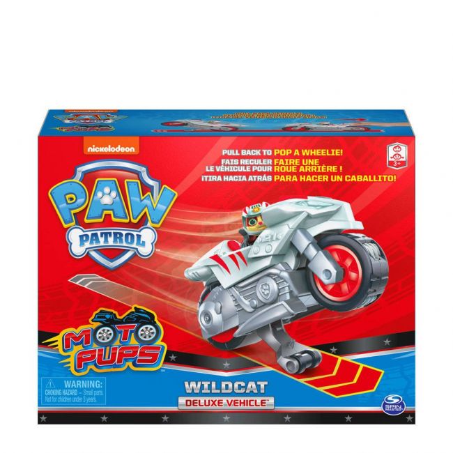 Inhoud: 1 Wildcat-figuur, 1 Moto Pups Wildcat Deluxe-voertuig