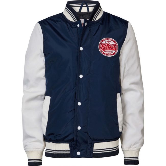 Bomberjack met Petrol-logo op de borst en rug. De jas heeft een drukknoopsluiting en twee steekzakken. Afgewerkt met ribgebreide boorden.