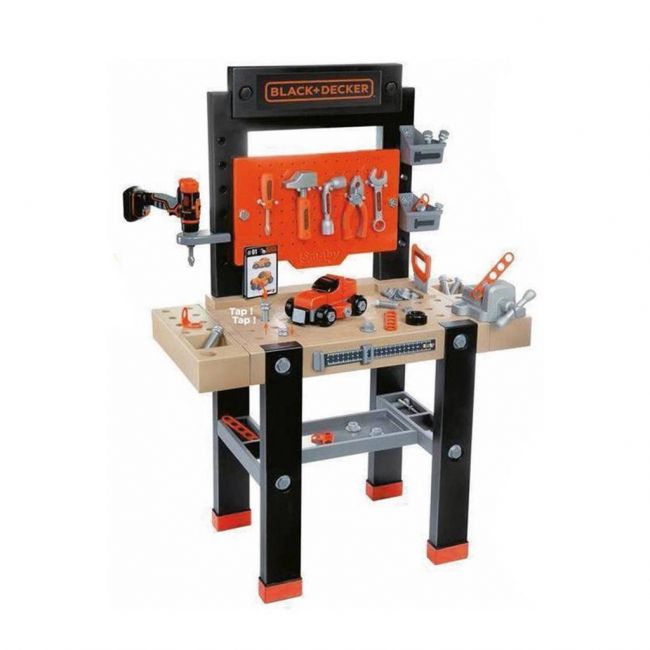 De Bricolo-werkbank is een complete set om te klussen. De wekrbank heeft veel opbergvakken en wel 92 accessoires, waaronder verschillende tools (zaag, hamer, schroevendraaier enz.), vijzen, moeren, een constructieset waarmee je een coole wagen kan bouwen en veel meer! Met de gratis applicatie leert je kind hoe het gereedschap te gebruiken (beschikbaar voor iOS en Android). Geschikt voor klussers vanaf 3 jaar.