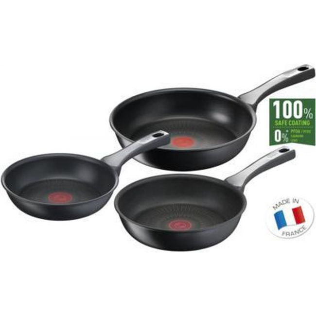 Tefal Unlimited 3-delige set; koekenpan 24 cm, koekenpan 28 cm, wokpan 28 cm