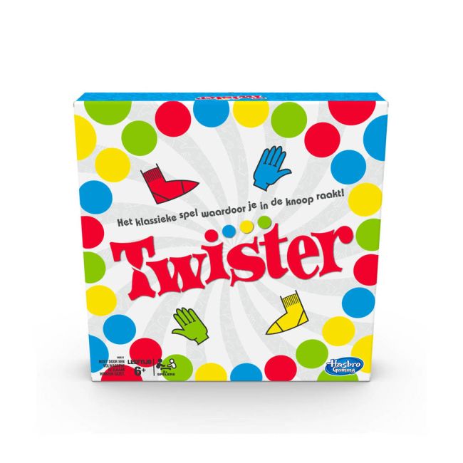 Voeg plezier toe aan een feestje of familieavond met dit klassieke spel dat spelers in de knoop legt! Eén persoon geeft een draai aan de draaiwijzer -- en zie wat er gebeurt wanneer de spelers hun handen en voeten op de mat proberen te houden! Rechtervoet op rood! Wie kan het? Linkervoet op groen - wie heeft het onder controle? Als de knie of elleboog van een speler de mat raakt of hij/zij valt om, dan ligt hij/zij uit het spel. De speler die als laatste overeind blijft, is de winnaar! Hasbro Gaming and all related terms are trademarks of Hasbro.