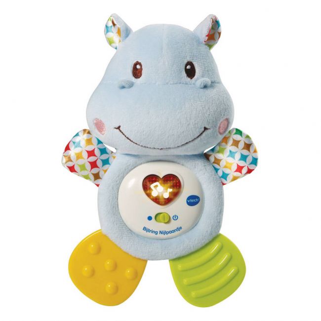 Knuffel, knabbel en speel met de Vtech bijtring en de nijllpaard knuffel.